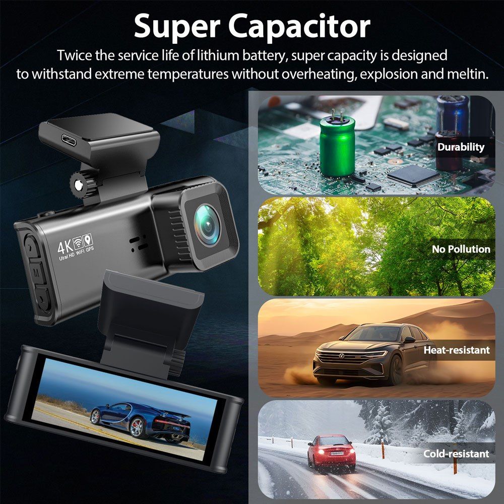 Resolution:Fron 4K+Rear 1080PViewing Angle : Front 170+Rear 170 degreesG-Sensor:Three axis 3DWifi:Built inGPS Tracker:okPower Port:Type-cMax. memory supported:512GB Class 10شناسه کالا در انبار: DDC-004
