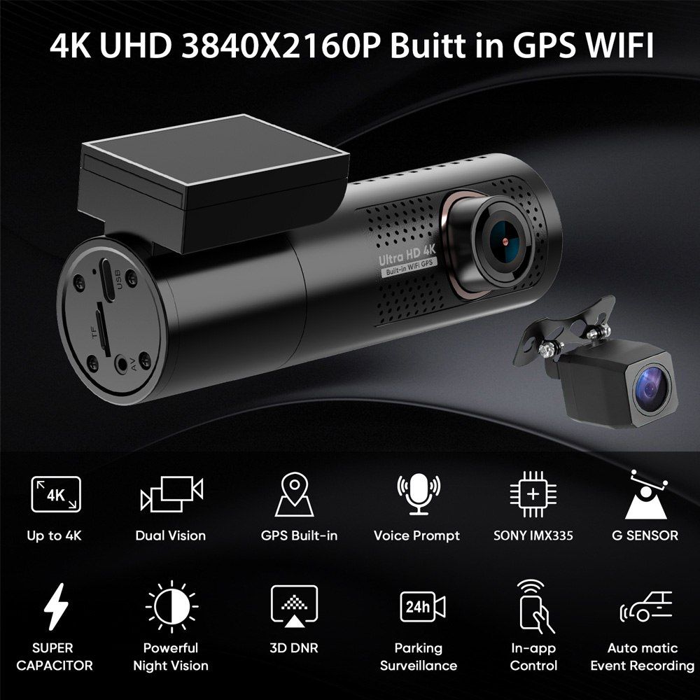 Resolution:Fron 4K+Rear 1080pViewing Angle : Front 170+Rear 170 degreesG-Sensor:Three axis 3DWifi:Built in 5.8 GHzGPS Tracker:okPower Port:Type-cMax. memory supported:512GB Class 10شناسه کالا در انبار: DDC-003